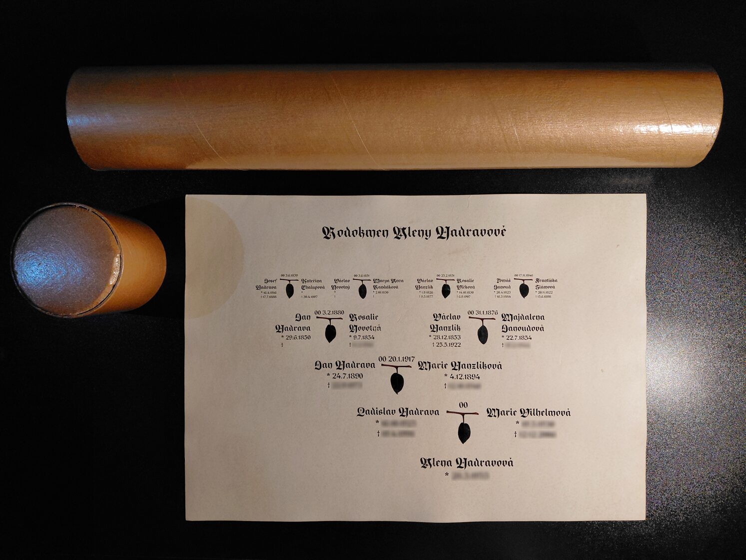 Rodokmen Aleny Hadravové ze strany otce, čtyři dohledané generace