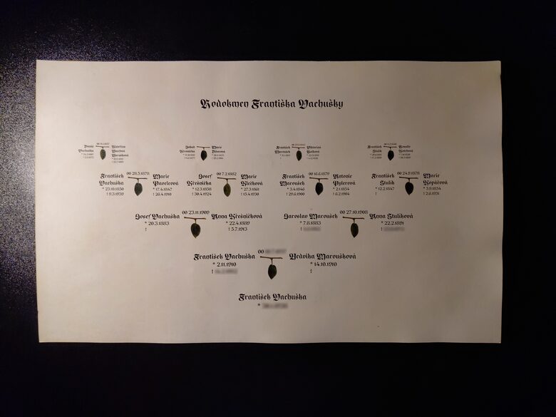 Rodokmen Václava Manžela ze strany otce, čtyři dohledané generace, vytvořeno s omezeným rozpočtem