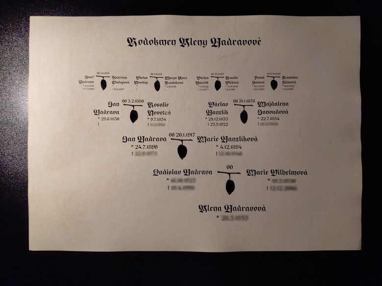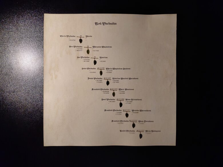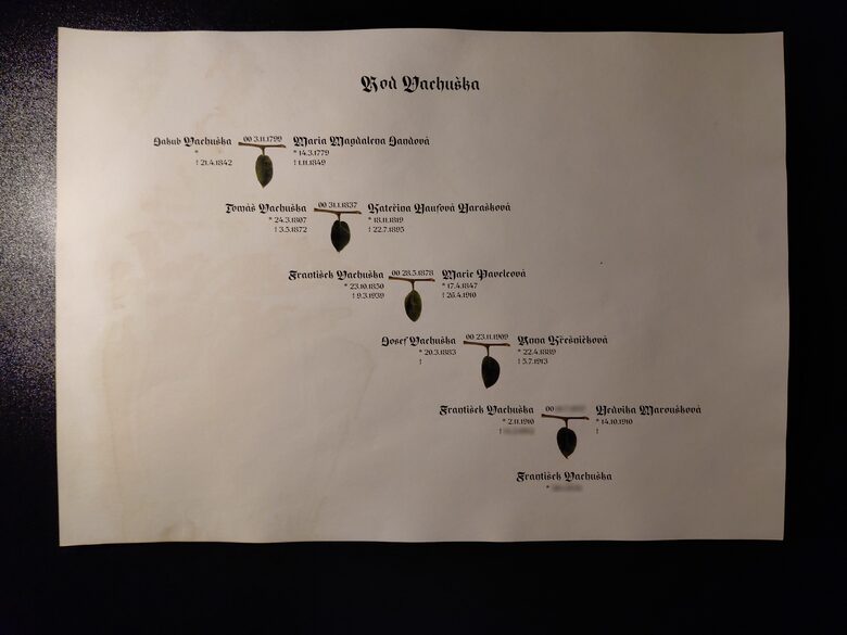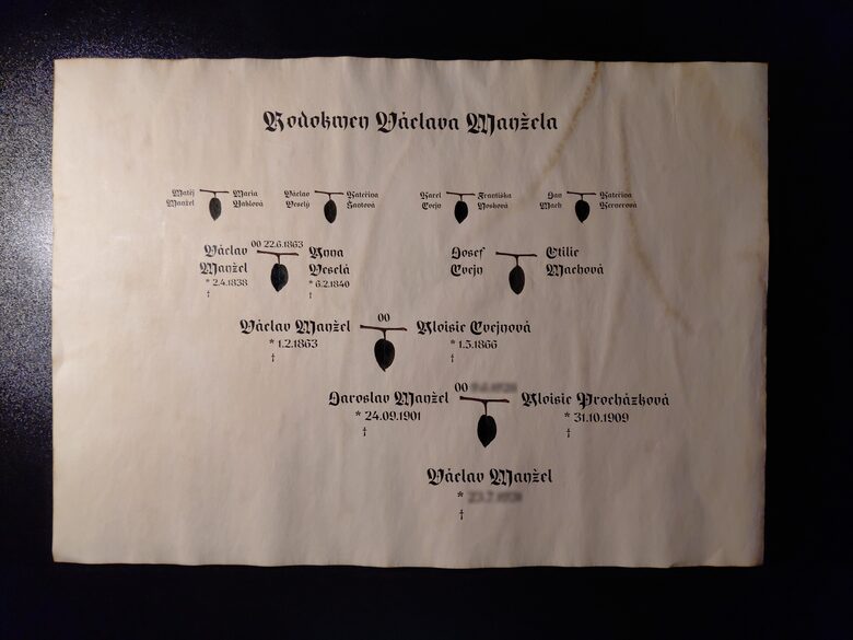 Family tree of Václav Manžel on his father's side, four generations, created on a limited budget